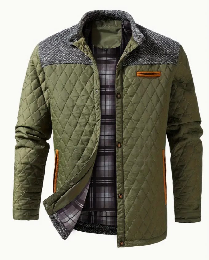 Men’s Casual Stand Collar Warm Quilted Jacket For Fall Winter.