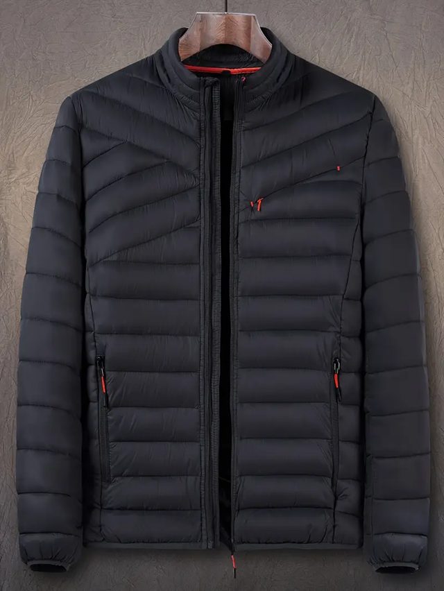 Men’s Casual Stand-Up Collar Jacket – Warm, Windproof with Multiple Pockets, Zip-Up Design for Fall & Winter, Plus Size Winter Coats, Autumn, Contrast Color, Jacket Top.
