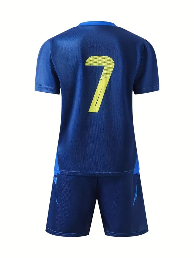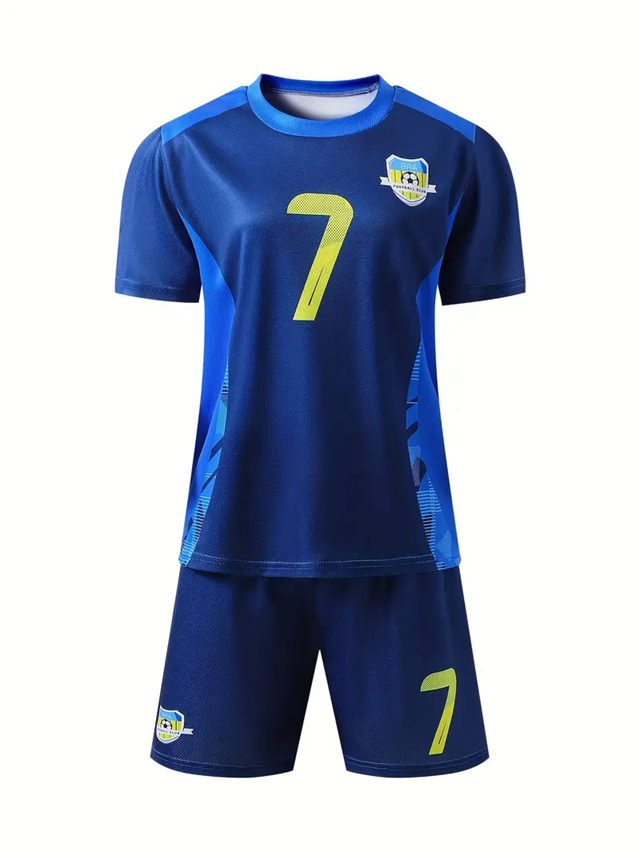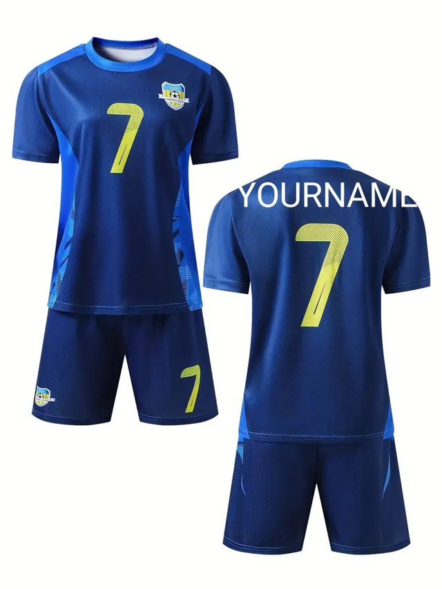 Customizable Number 7 Soccer Jersey and Shorts Set – Navy Blue & Light Blue Accents, Breathable, Durable, and Sweat-Wicking for Outdoor Sports, Training, and Casual Wear, Casual Wear Jersey|Vibrant Lettering|Stretchy Fabri, Sweat-Resistant